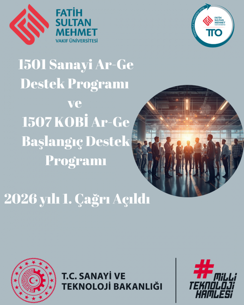 KOBİ ölçeğindeki kuruluşların Ar-Ge ve yenilikçilik faaliyetlerini desteklemek amacıyla yürütülen TÜBİTAK 1501-Sanayi Ar-Ge Destek Programı ile 1507-KOBİ Ar-Ge Başlangıç Destek Programı 2026 yılı 1. çağrıları 1 Ocak 2026 itibarıyla başvuruya açılmıştır.