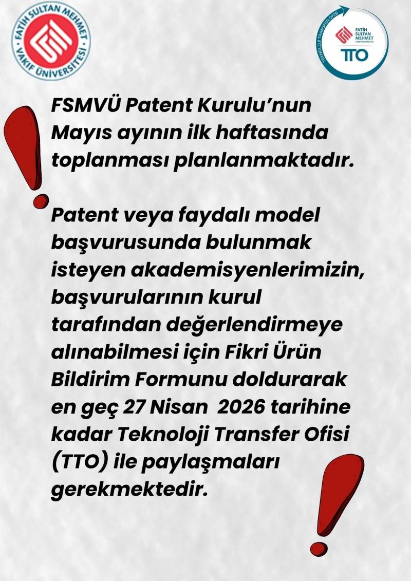 Patent/Faydalı Model Başvuru Duyurusu