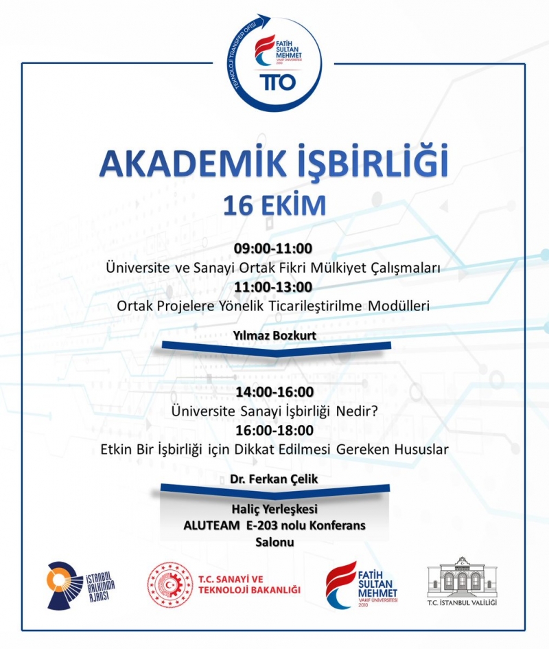 İSTKA projemiz kapsamında düzenlenecek “Akademik İşbirliği Eğitimi” 16 Ekim 2019 tarihinde 09:00-18:00 saatleri arasında Haliç Yerleşkesi ALUTEAM E203 no'lu Konferans Salonu’nda gerçekleştirilecektir.