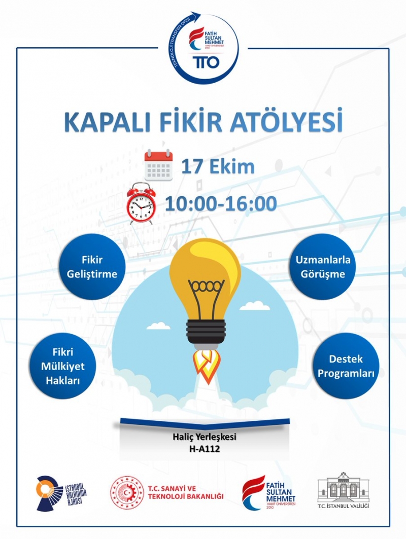 “Kapalı Fikir Atölyesi” 17 Ekim 2019 tarihinde Üniversitemiz Haliç Yerleşkesi H-A112 nolu sınıfta gerçekleştirilecektir.