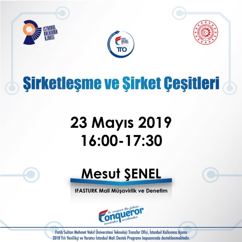 Conqueror Girişimcilik Eğitimi ve Mentorlük Programımızda bu hafta IFASTURK Mali Müşavirlik ve Denetim firması sahibi Mesut ŞENEL ile Şirketleşme ve Şirket Çeşitleri eğitimi gerçekleştireceğiz.
