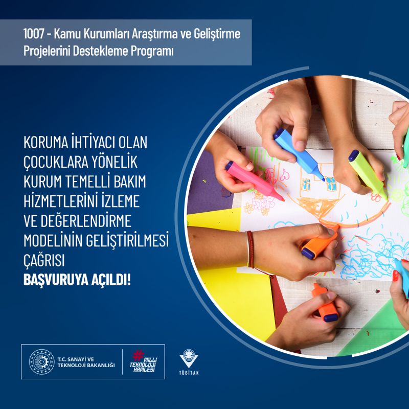 Koruma ve bakım altında olan çocuklara yönelik kurum temelli bakım hizmetlerinde mevcut imkânların artırılması ve hizmet kalitesinin yükseltilmesi, izleme ve değerlendirme modelinin geliştirilmesi amacıyla “Koruma İhtiyacı Olan Çocuklara Yönelik Kurum Temelli Bakım Hizmetlerini İzleme ve Değerlendirme Modelinin Geliştirilmesi” başlıklı çağrı, Kamu Araştırmaları Destek Grubu (KAMAG) tarafından yayınlanmıştır.
