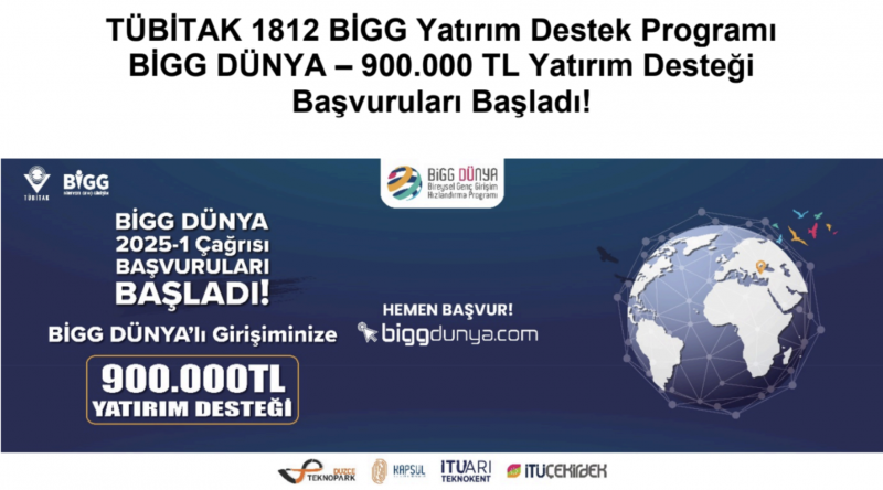 TÜBİTAK 1812 – BİGG Yatırım Destek Programının 1. aşama faaliyetlerinin yürütüldüğü BİGG DÜNYA Programı yeni dönem başvuruları başlamıştır.