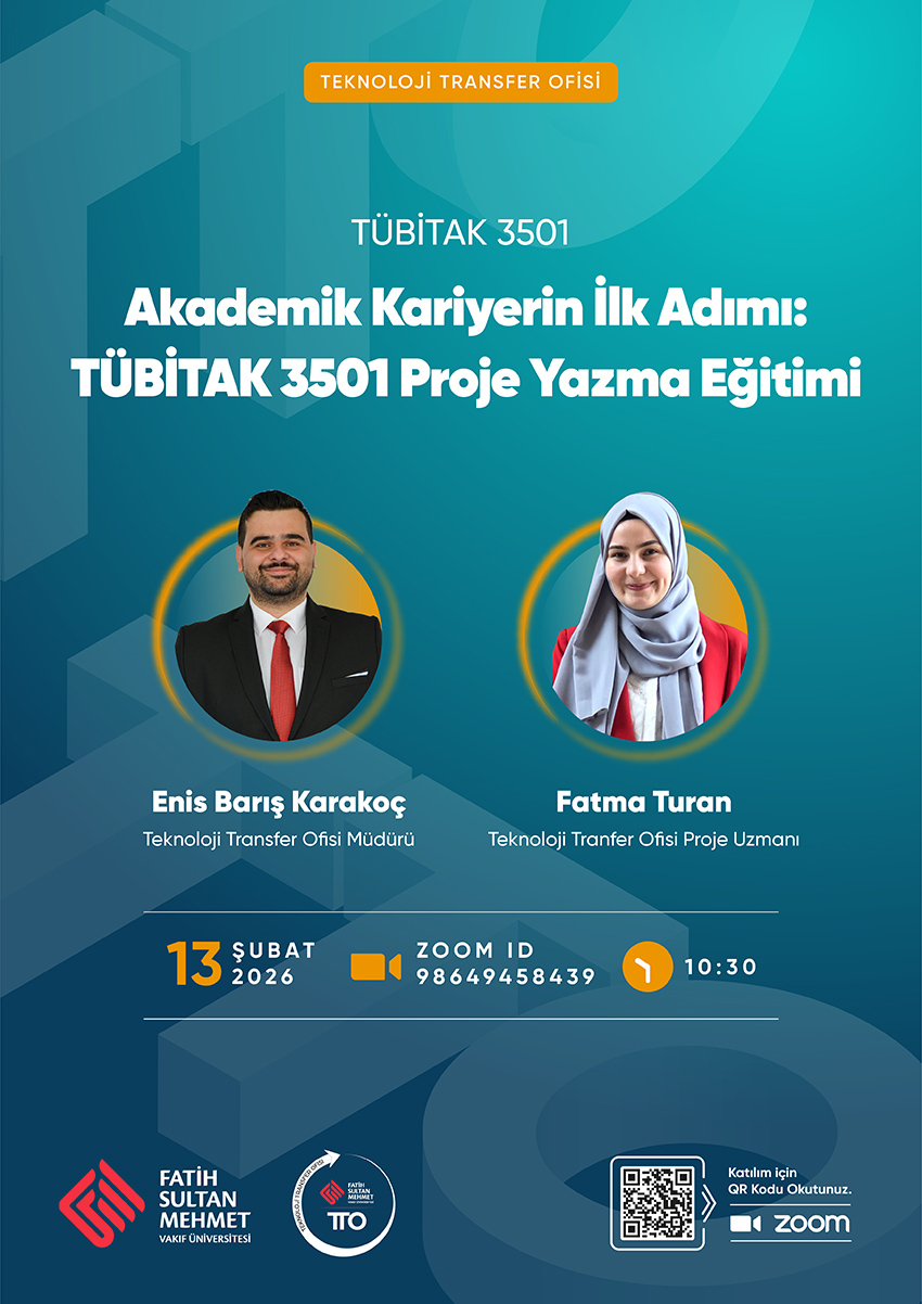 Teknoloji Transfer Ofisi, TUSEB Yüksek Lisans Öğrencilerine Yönelik A2 Proje Destek Programı için proje yazma başvuru süreçlerine dair eğitim düzenliyor. Mühendislik Fakültesi Dr. Öğr. Üyesi Fatih Çiftçi’nin konuşmacı olduğu eğitimde katılımcılarla uygulama da yapılacak.
